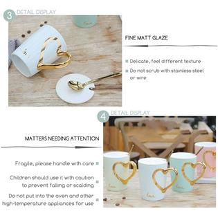 Pavoi Cute Heart Shaped Coffee Mug With Lid Spoon Luest Ceramic Travel Coffee Mug Milk Tea Coffee Smooth Coffee Mug Tumbler